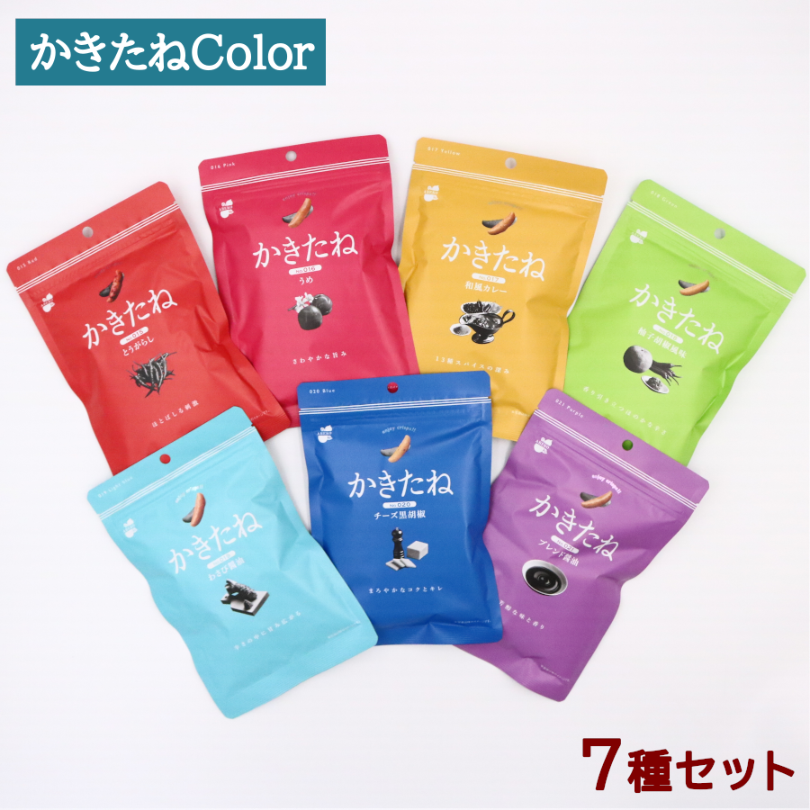柿の種を、好きな味で。好きな色で。かきたねカラーシリーズ7種類をセットにしてお届けします。