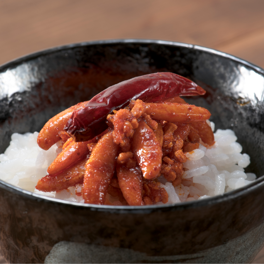 商品詳細情報【柿の種のオイル漬けにんにくラー油】