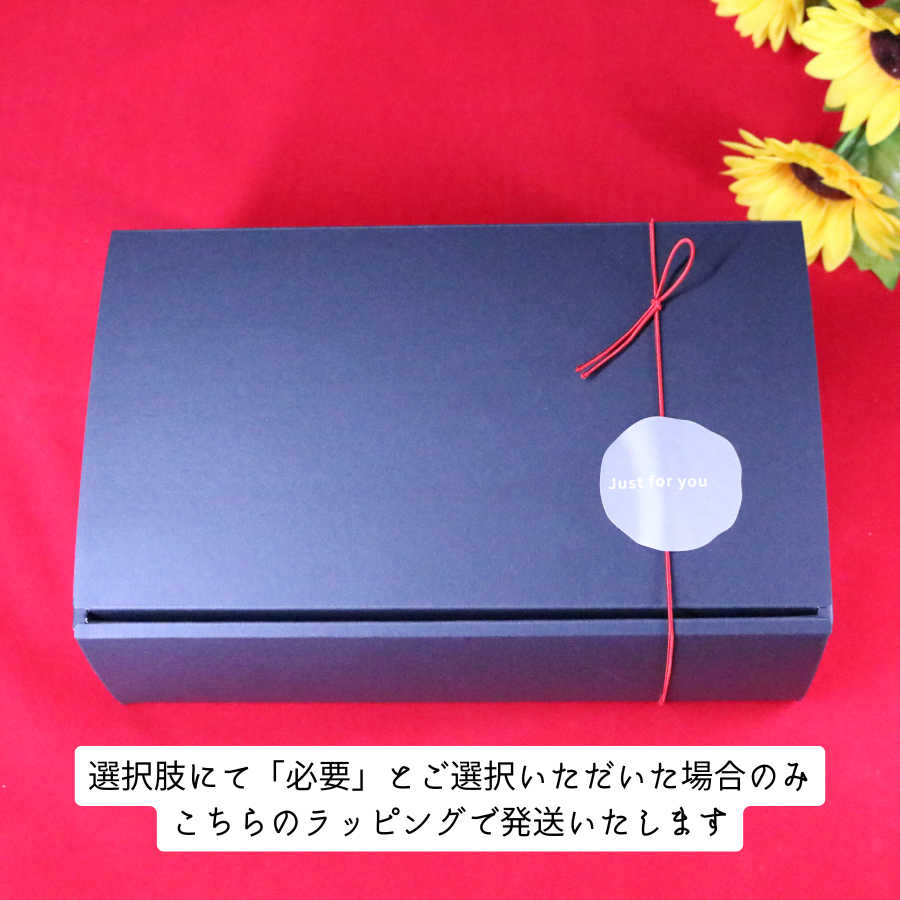 ご希望の方には赤いゴムリボンと、シルバーのメッセージシールをお付けいたします。