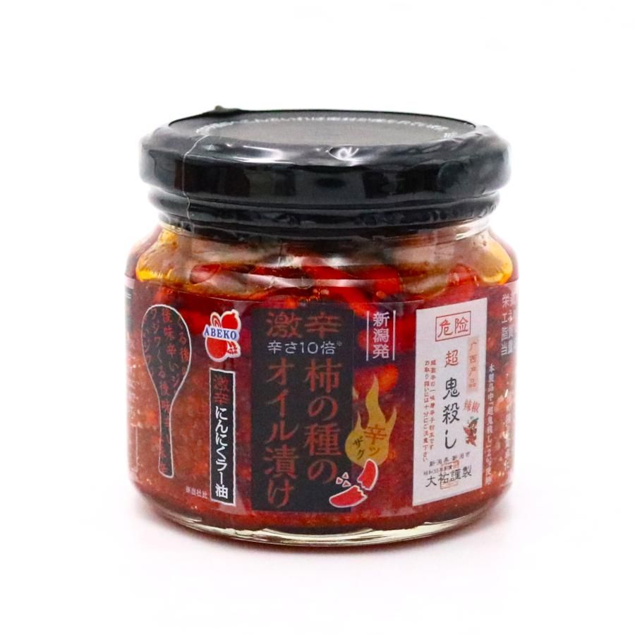 商品詳細情報【柿の種のオイル漬け激辛にんにくラー油】