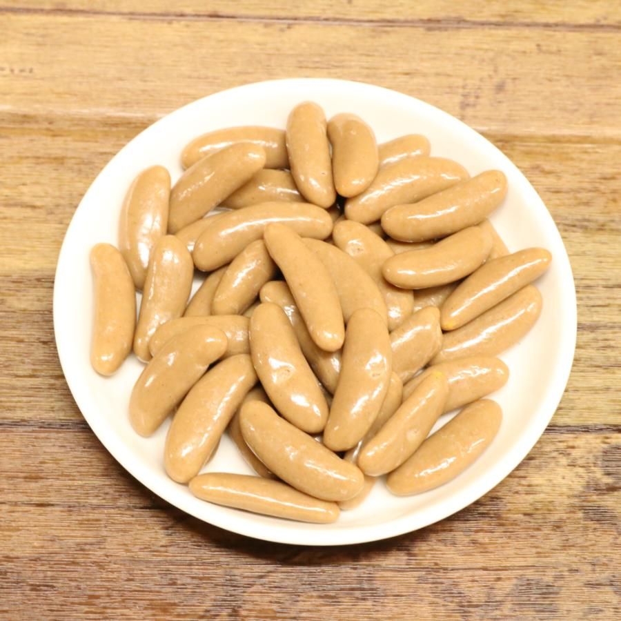 まろやかな味わいとほろ苦い風味のカフェラテチョコで柿の種を包みました。