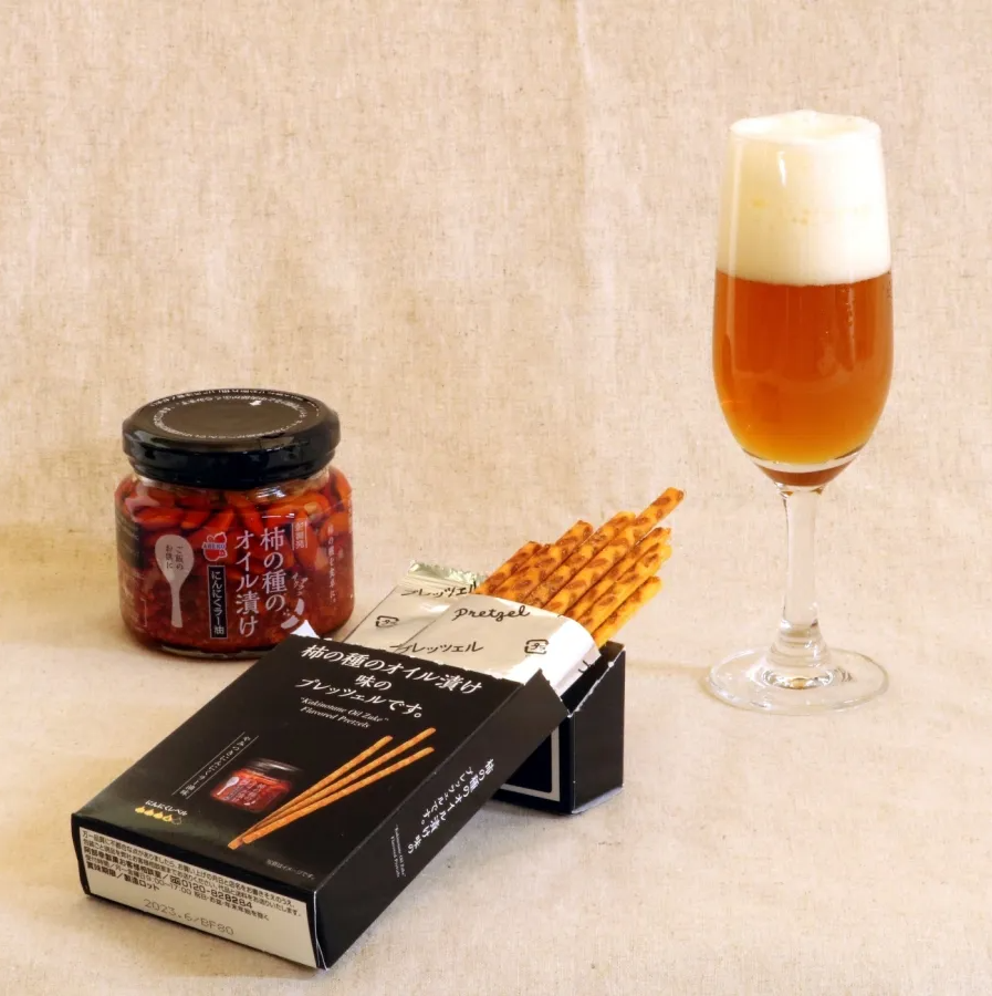 柿の種のオイル漬けが、にんにく香る、つぶつぶ食感のプレッツェルに!!
