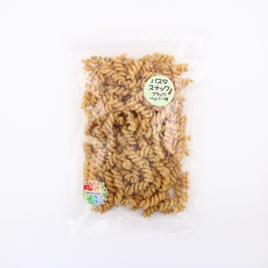 ショートパスタをカリッとフライし、ブラックペッパー味に仕上げたパスタスナックです。