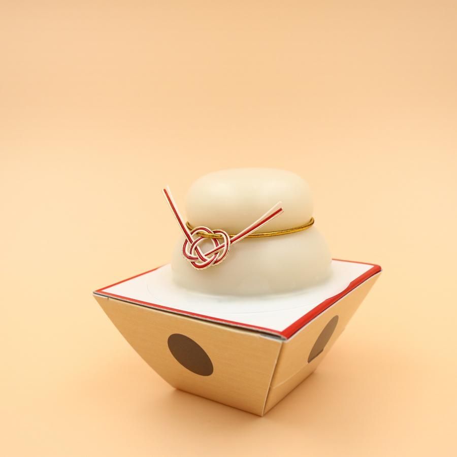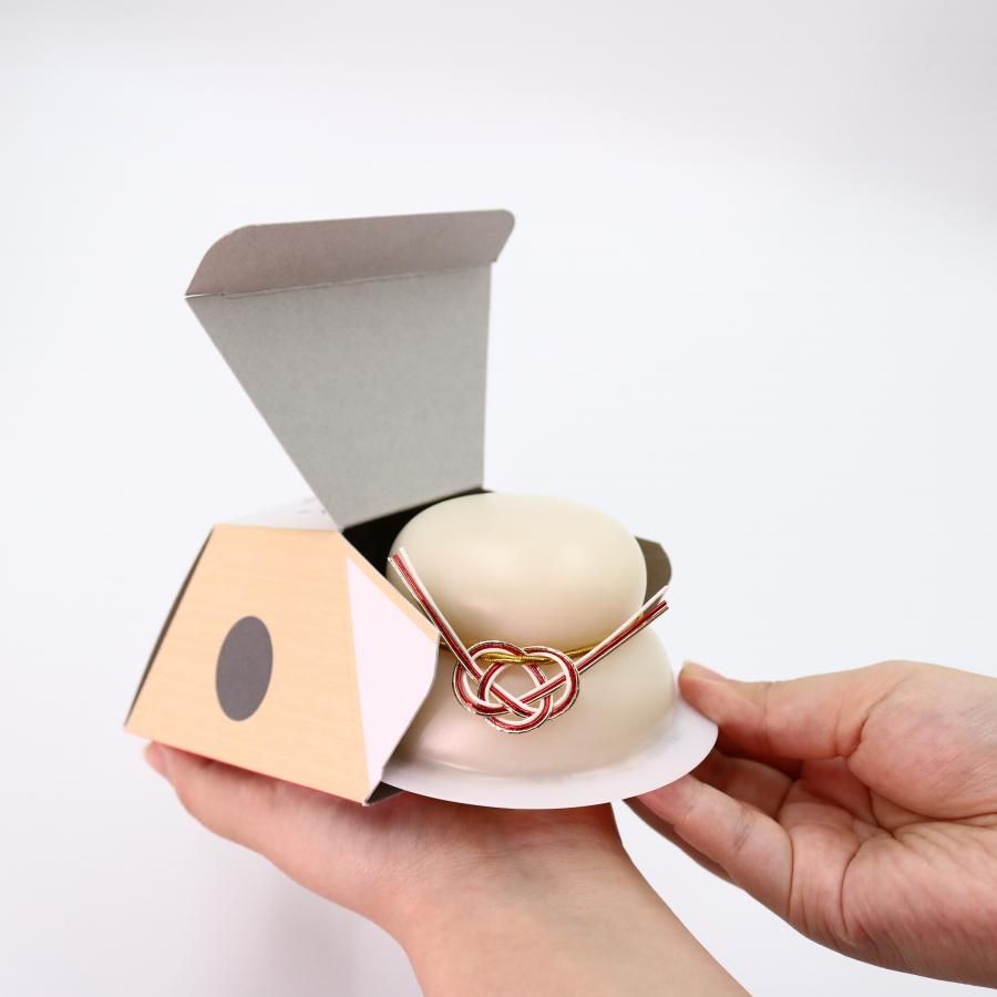 外箱は鏡餅の形に合わせた台形デザイン。
